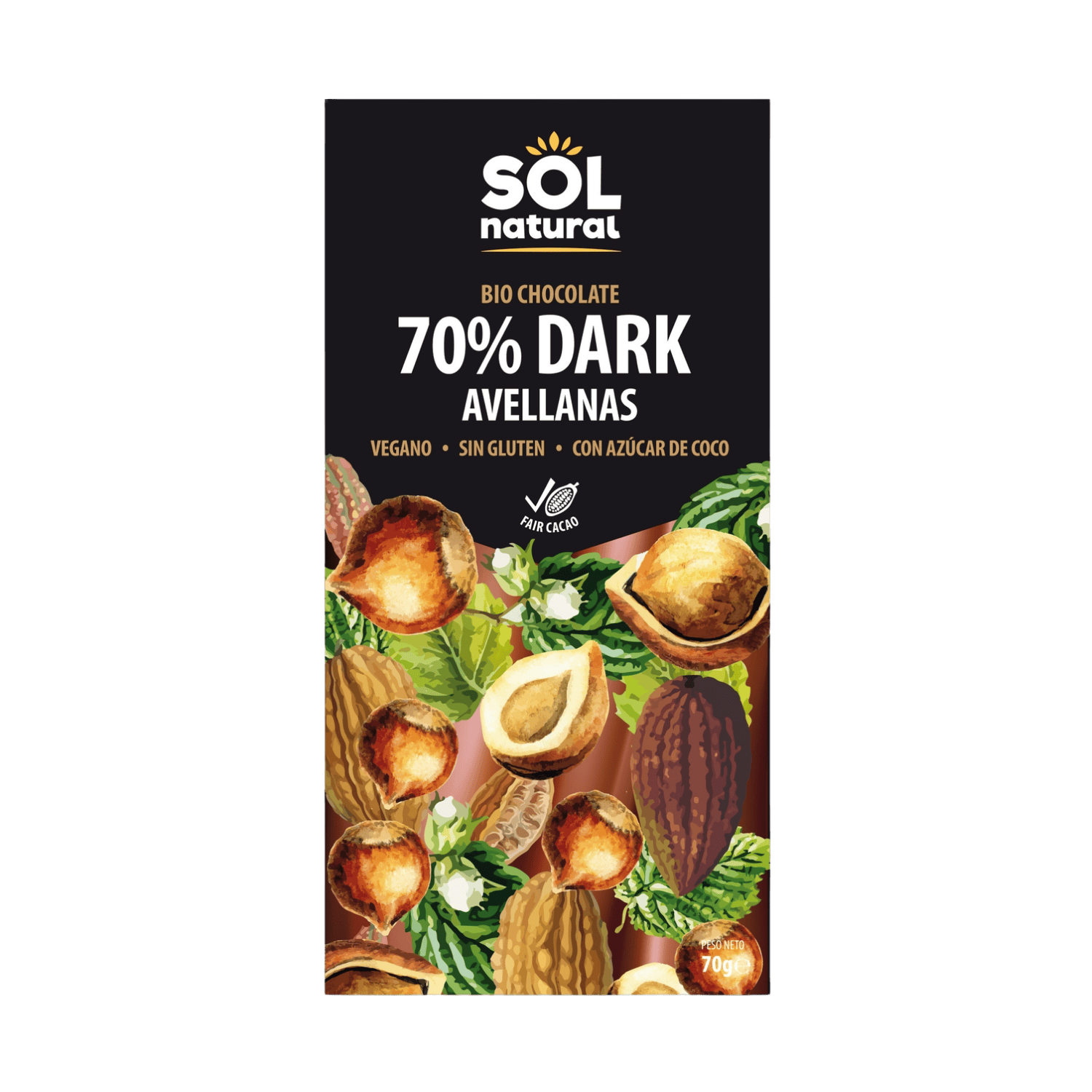 Chocolate Negro 70% con Avellana Bio SolNatural
