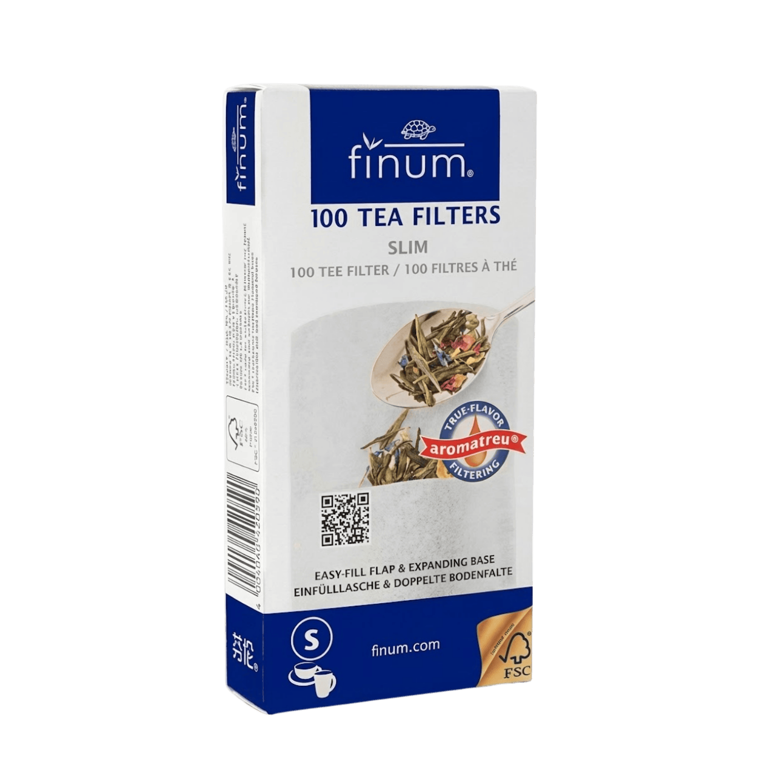 Filtros de papel talla S de la marca Finum. Miden 7,5 cm de ancho y 15,5 cm de alto. Son desechables, muy prácticos y perfectos para preparar té a granel sin necesidad de infusor. Además, son ideales para llevar tus tés de viaje o disfrutar de tu infusión cuando estás fuera de casa sin renunciar a tu rutina.