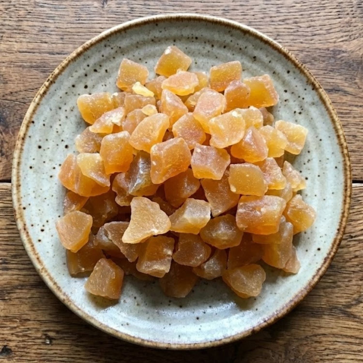 Jengibre deshidratado sin azúcar añadido, intenso y natural, perfecto para consumir como snack entre horas o como ingrediente en cocina. Una opción diferente y funcional para quienes disfrutan de sabores potentes y buscan un tentempié distinto.